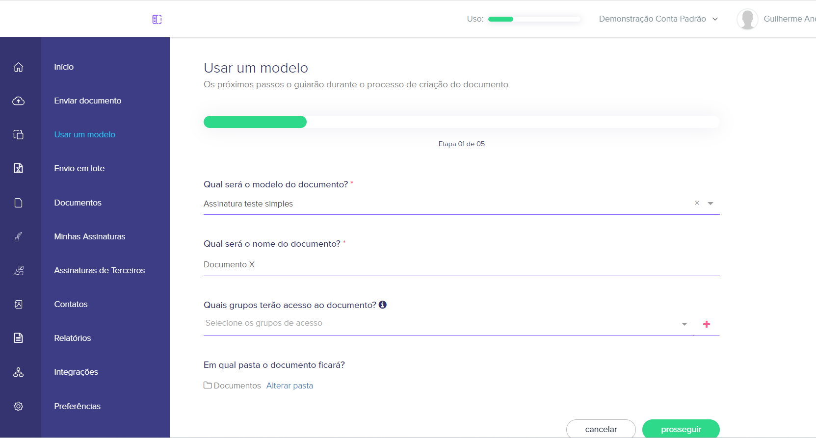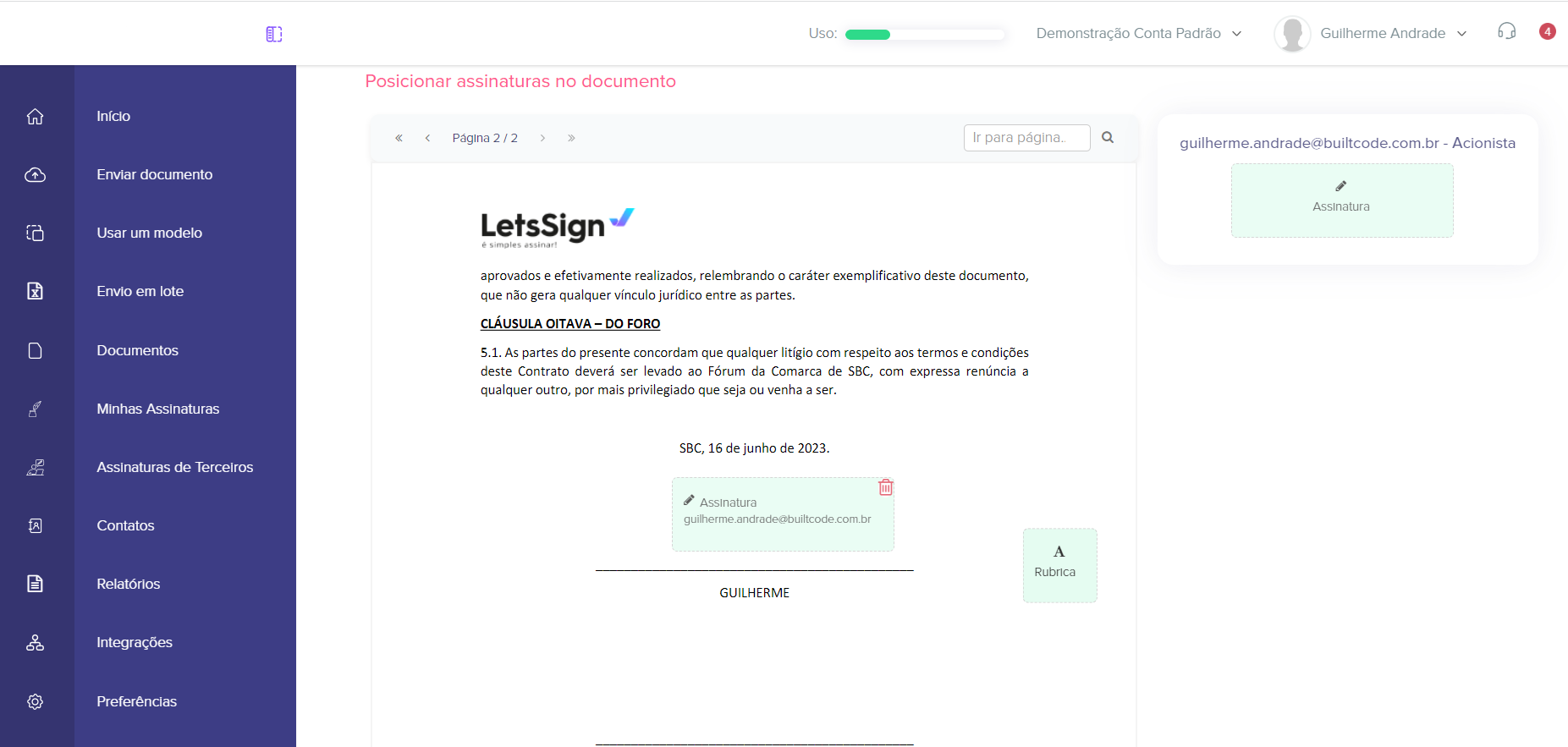 10. Envie o documento para assinar, adicionando os signatários.