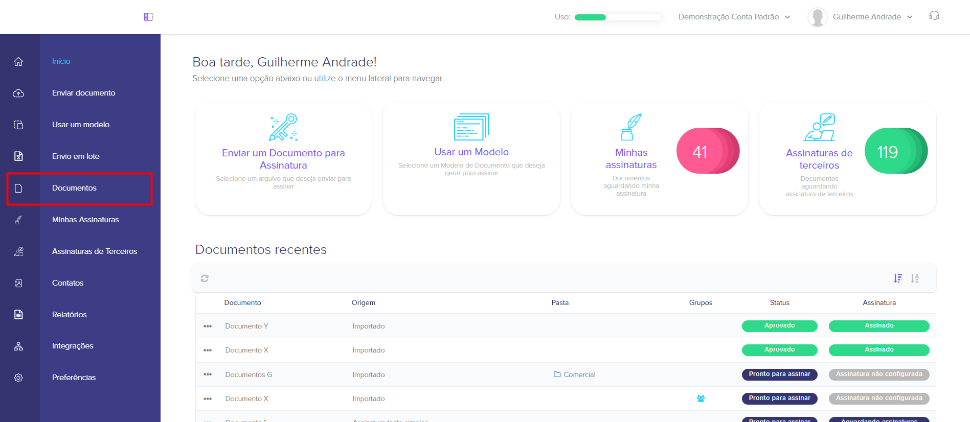1. No menu lateral esquerdo, clique em 'Documentos'.