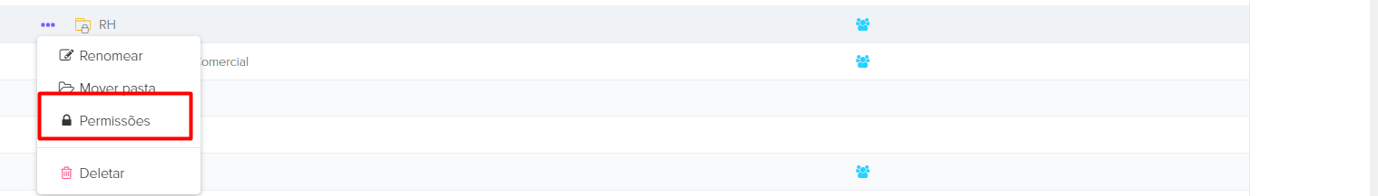 2. Clique nos "..." pontinhos da pasta na qual deseja gerenciar as permissões.